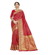 Woven Banarasi Silk Blend, Jacquard Saree (Red)