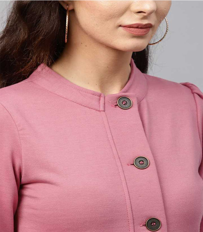 [vc_row][vc_column][vc_column_text]Pink Fleece Peplum Jacket with a Mandarin Collar, in Fleece fabric, Unlined, Full Sleeves, Regular , Fit & Flare, Button Closure, Flared Hemline and features Peplum Pattern[/vc_column_text][/vc_column][/vc_row]