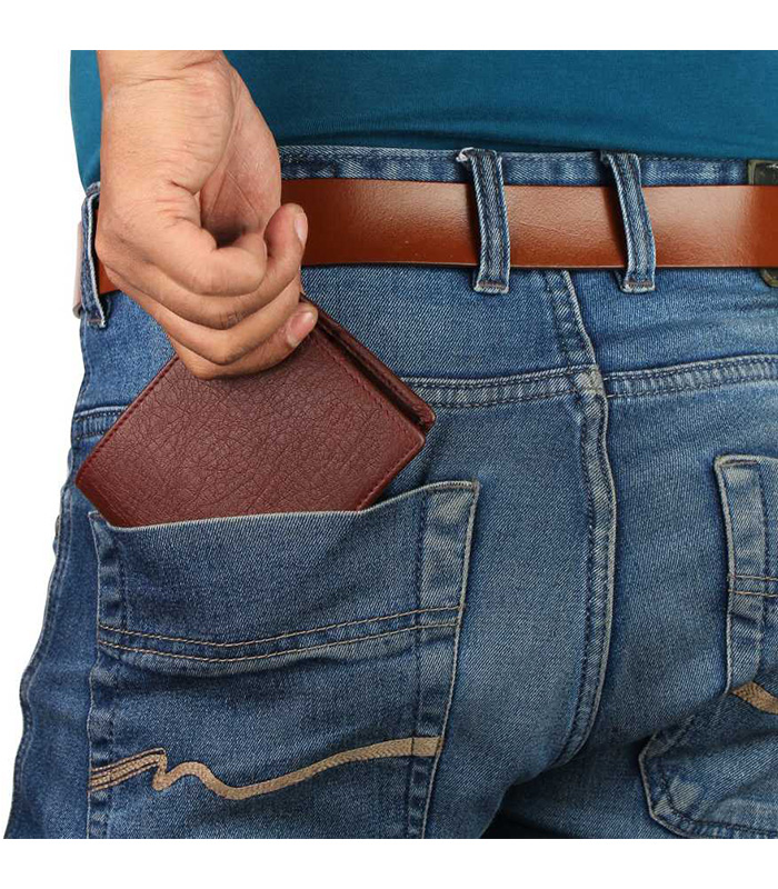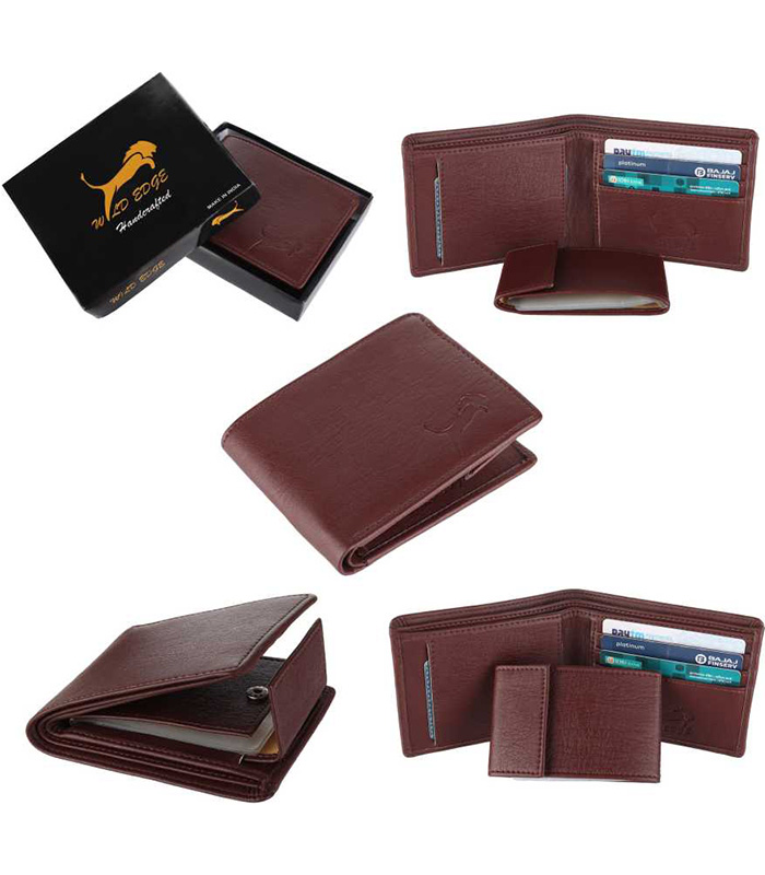 Men Brown Artificial Leather Money Clip (10 Card Slots)