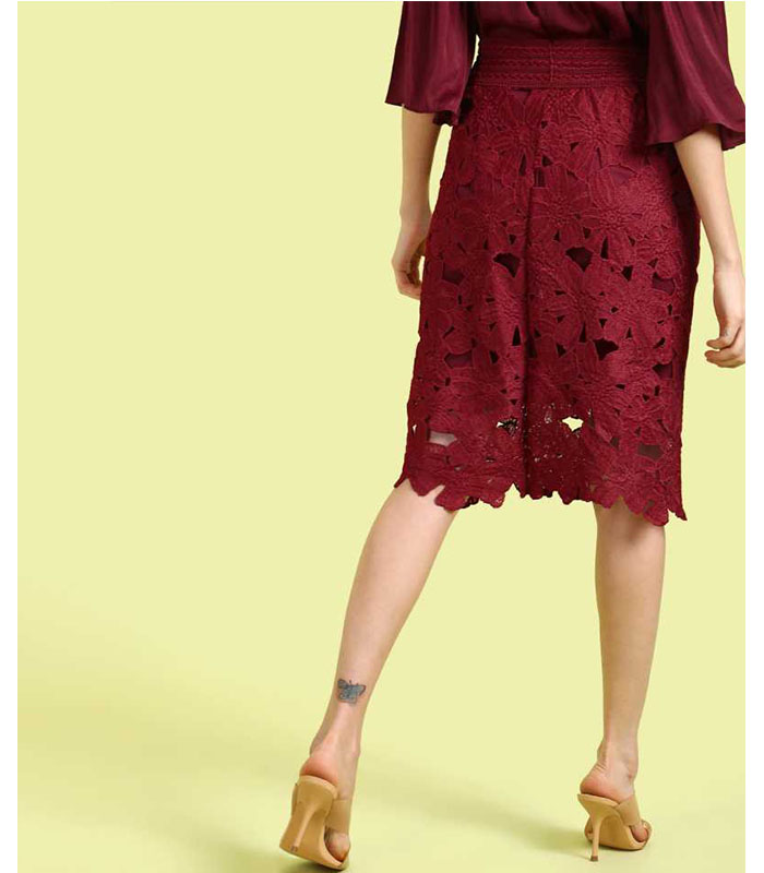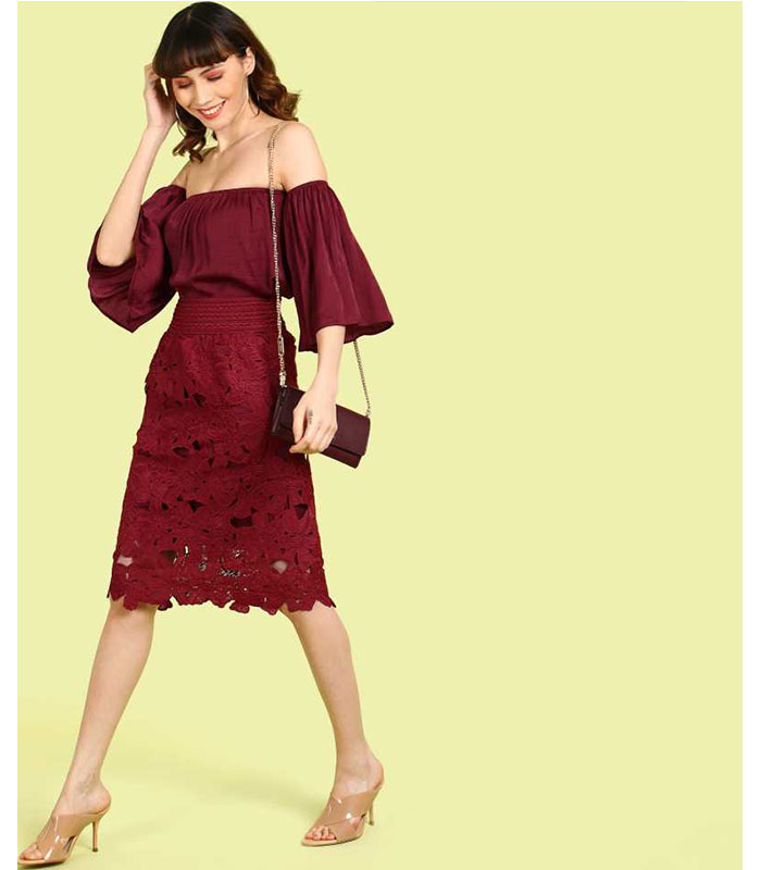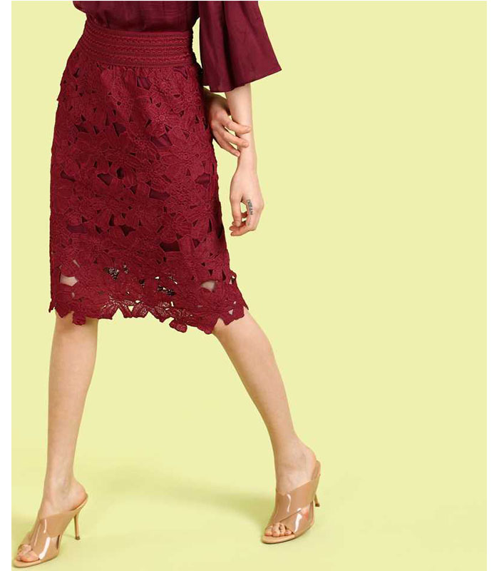 Sua Women Self Design Straight Maroon Skirt