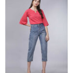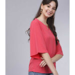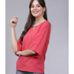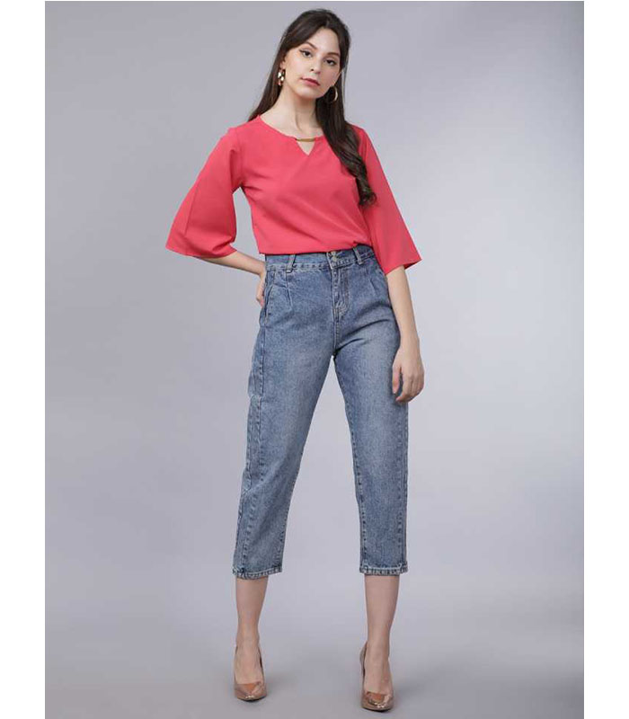TT Casual 3/4 Sleeve Solid Women Pink Top
