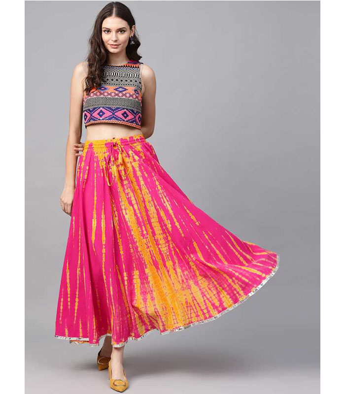Vara Women Abstract Flared Pink Skirt
