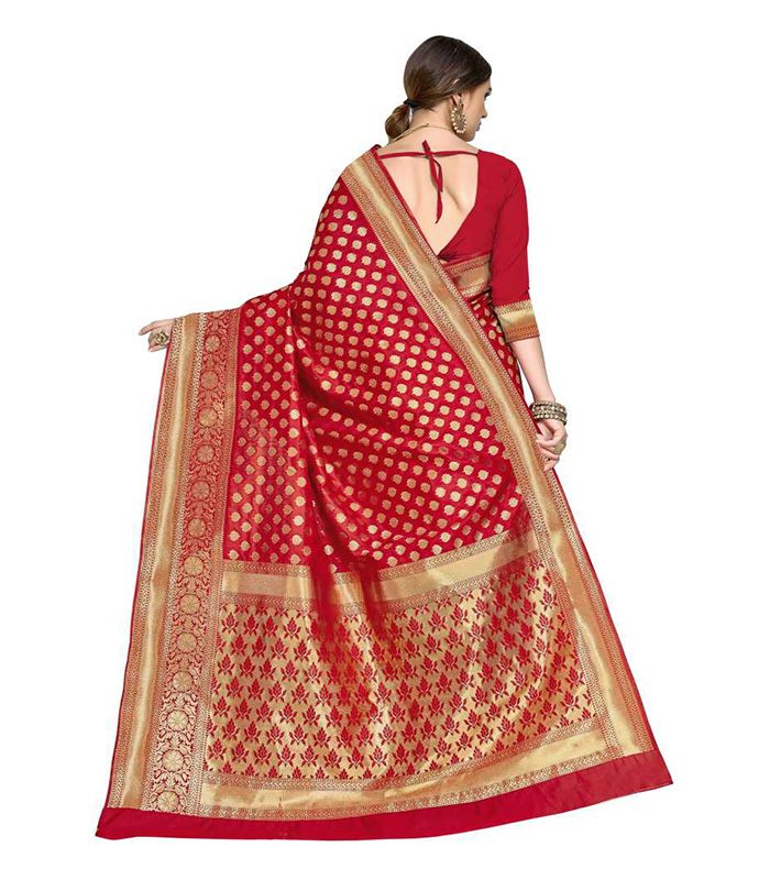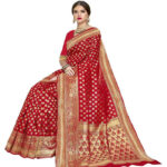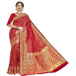Woven Banarasi Silk Blend, Jacquard Saree (Red)
