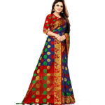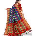 Woven, Embroidered, Checkered Banarasi Jacquard, Cotton Silk Saree (Blue)